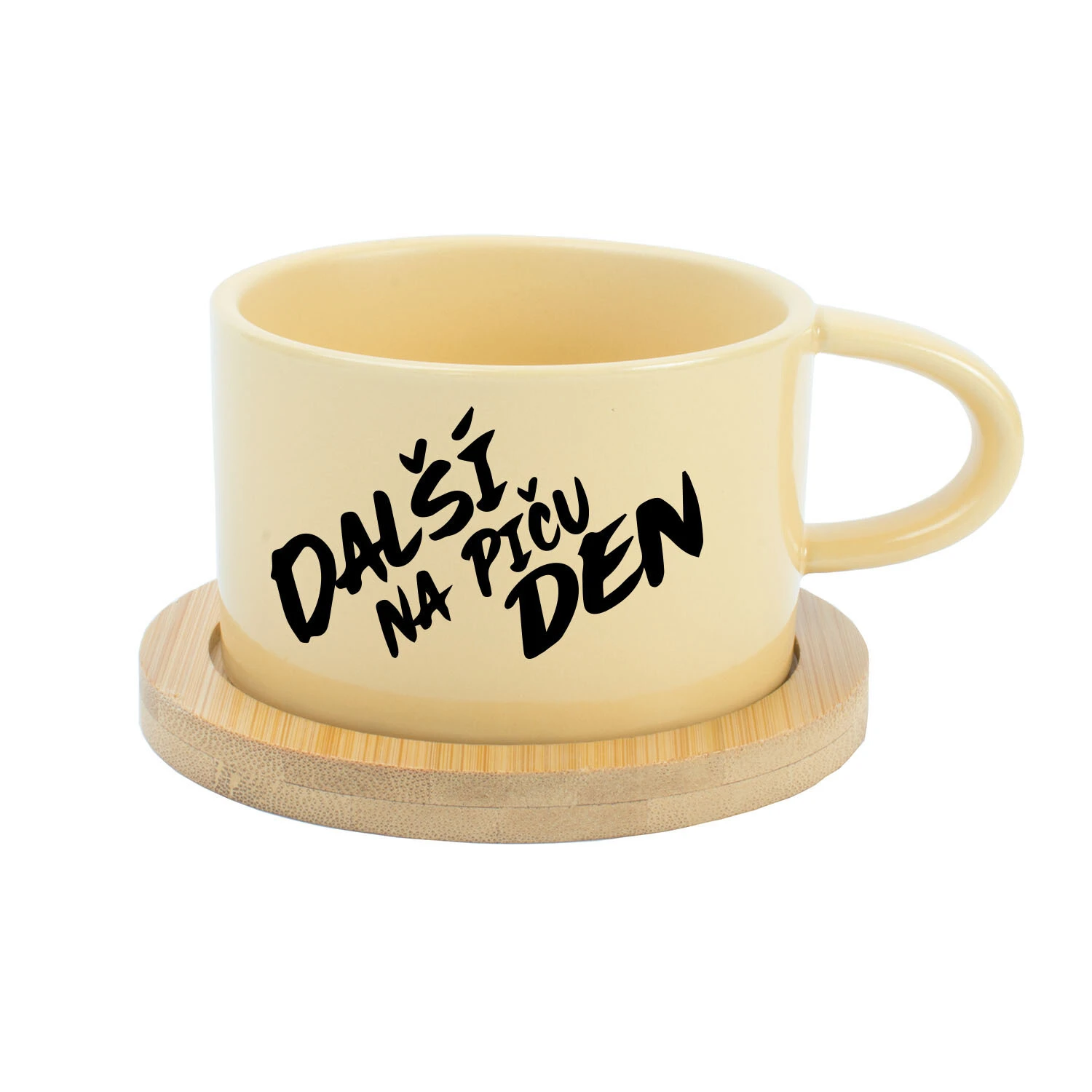 Hrnek má objem 200 ml, ideální na ranní kávu, čaj nebo cokoliv, co ti pomůže přežít další den. Součástí každého hrníčku je bambusový podtácek, který dodá celku čistý a přírodní vzhled.