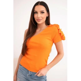 Dámská bavlněná blůza na jedno rameno s volánkem pomerančová