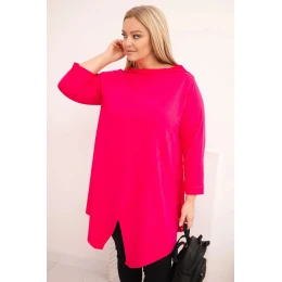 Dámská bavlněná blůza Plus Size asymetrická s ohrnovacími rukávy fuchsie