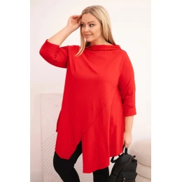 Dámská bavlněná blůza Plus Size asymetrická s ohrnutým rukávem červená