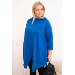 Dámská bavlněná blůza Plus Size asymetrická s ohrnutým rukávem chabrová