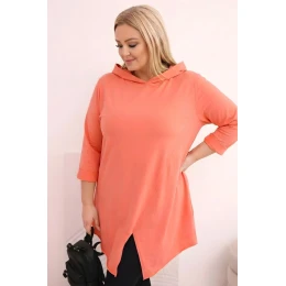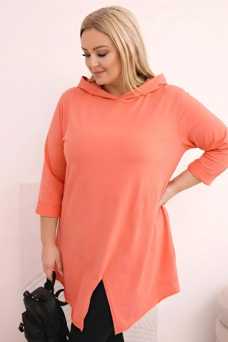 Dámská bavlněná blůza Plus Size asymetrická s ohrnutým rukávem meruňková