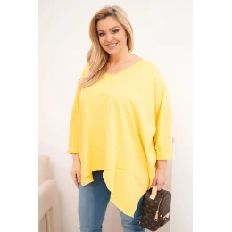 Dámská bavlněná blůza Plus Size s asymetrickým spodním lemem a výstřihem do V žlutá