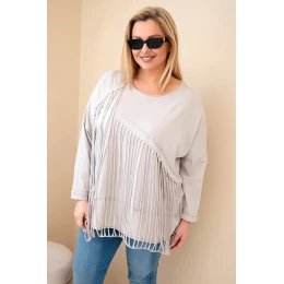 Hledáte stylovou blůzu, která přitáhne pohledy a zajistí komfort nošení? Dámská blůza Plus Size s třásněmi a dlouhým rukávem je výjimečná nabídka pro ženy, které si cení módního, neobvyklého vzhledu. Originální zdobení v podobě dlouhých třásní jí dodává lehkost a charakter, a oversize střih se skvěle přizpůsobí postavě a poskytuje volnost pohybu.