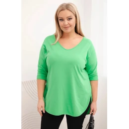 Dámská bavlněná blůza Plus Size s výstřihem do V a ohrnutým rukávem světle zelená