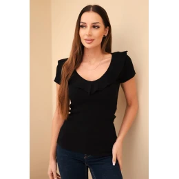 Dámská pruhovaná blůza s volánkem u výstřihu černá