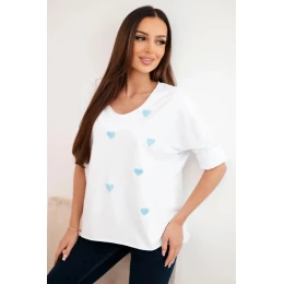Dámská bavlněná blůza s dlouhým rukávem a srdíčky bílá+modrá
