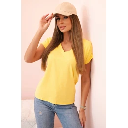 Dámská bavlněná blůza s výstřihem do V a krátkým rukávem žlutá