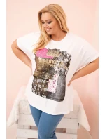 Dámská bavlněná halenka Plus Size s barevným potiskem bílá + růžová