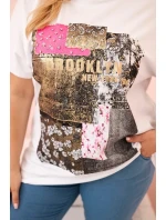 Pokud hledáte pohodlnou a zároveň originální halenku na každodenní nošení – tato nabídka vás jistě zaujme! Dámská halenka s krátkým rukávem, ozdobená barevným potiskem ve stylu patchworku, je ideální kombinací pohodlí a městského stylu. Přední část zdobí zajímavý kontrastní potisk s motivem "Brooklyn New York", který celku dodává moderní charakter. Tento model je ideální jak pro neformální stylizace s džínami, tak i jako pohodlný základ pod koženou bundu nebo kardigan. Díky volnému střihu krásně sedí na postavě a příjemný materiál s převahou bavlny zajišťuje pohodlí po celý den. Model určený pro dámy nosící velikosti Plus Size – XXL, XXXL a větší.