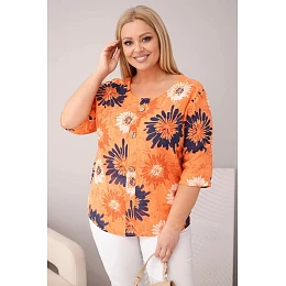 Dámská bavlněná halenka Plus Size s krátkým rukávem a knoflíky oranžová
