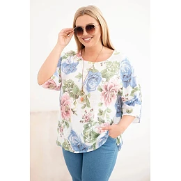 Halenka dámská plus size s krátkým rukávem je vynikající volbou pro ženy, které si cení pohodlí a stylu v každodenních outfitech. Model se vyznačuje efektním květinovým vzorem, který dodává celku ženský půvab a svěžest. Volný střih zajišťuje, že halenka krásně padne na postavu, poskytuje volnost pohybu a pohodlí při nošení po celý den.
