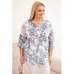 Halenka má volný střih Plus Size, který zajišťuje volnost pohybu a skvělé padnutí na různé typy postav. Kulatý výstřih s jemným rozparkem a ozdobný knoflík dodávají celku decentní eleganci. Krátký rukáv dělá model ideální volbou na léto, dovolené, procházky či každodenní nošení do práce.