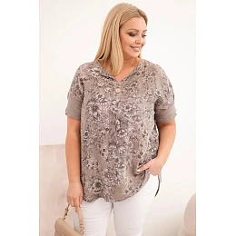 Halenka má volný střih Plus Size, který zajišťuje volnost pohybu a skvělé padnutí na různé typy postav. Kulatý výstřih s jemným rozparkem a ozdobný knoflík dodávají celku decentní eleganci. Krátký rukáv dělá model ideální volbou na léto, dovolené, procházky či každodenní nošení do práce.
