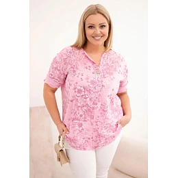 Dámská bavlněná halenka Plus Size s krátkým rukávem a ozdobným knoflíkem světle růžová
