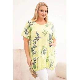 Dámská bavlněná halenka Plus size s krátkým rukávem a vázáním dole světle zelená