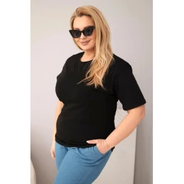 Dámská bavlněná halenka Plus Size s krátkým rukávem basic černá