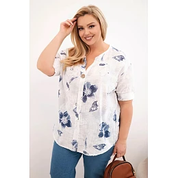 Dámská bavlněná halenka Plus Size s květinovým vzorem bílá