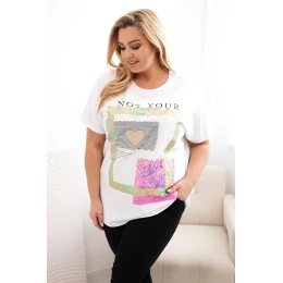 Dámská bavlněná halenka Plus Size se zlatým nápisem bílá + zelená