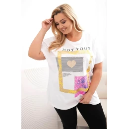 Dámská bavlněná halenka Plus Size se zlatým nápisem bílá + žlutá