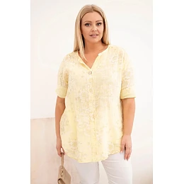 Dámská bavlněná halenka pro plnoštíhlé s krátkým rukávem a ozdobným knoflíkem žlutá