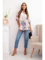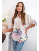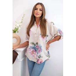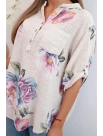 Dámská bavlněná halenka s květinovým vzorem béžový