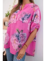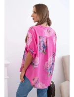 Dámská bavlněná halenka s květinovým vzorem růžový