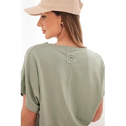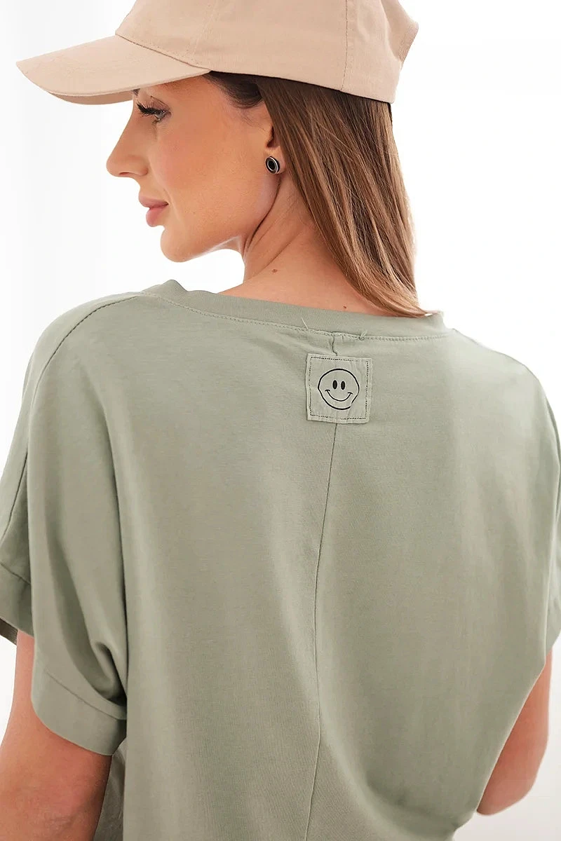Dámská bavlněná halenka s výstřihem do V a krátkým rukávem khaki