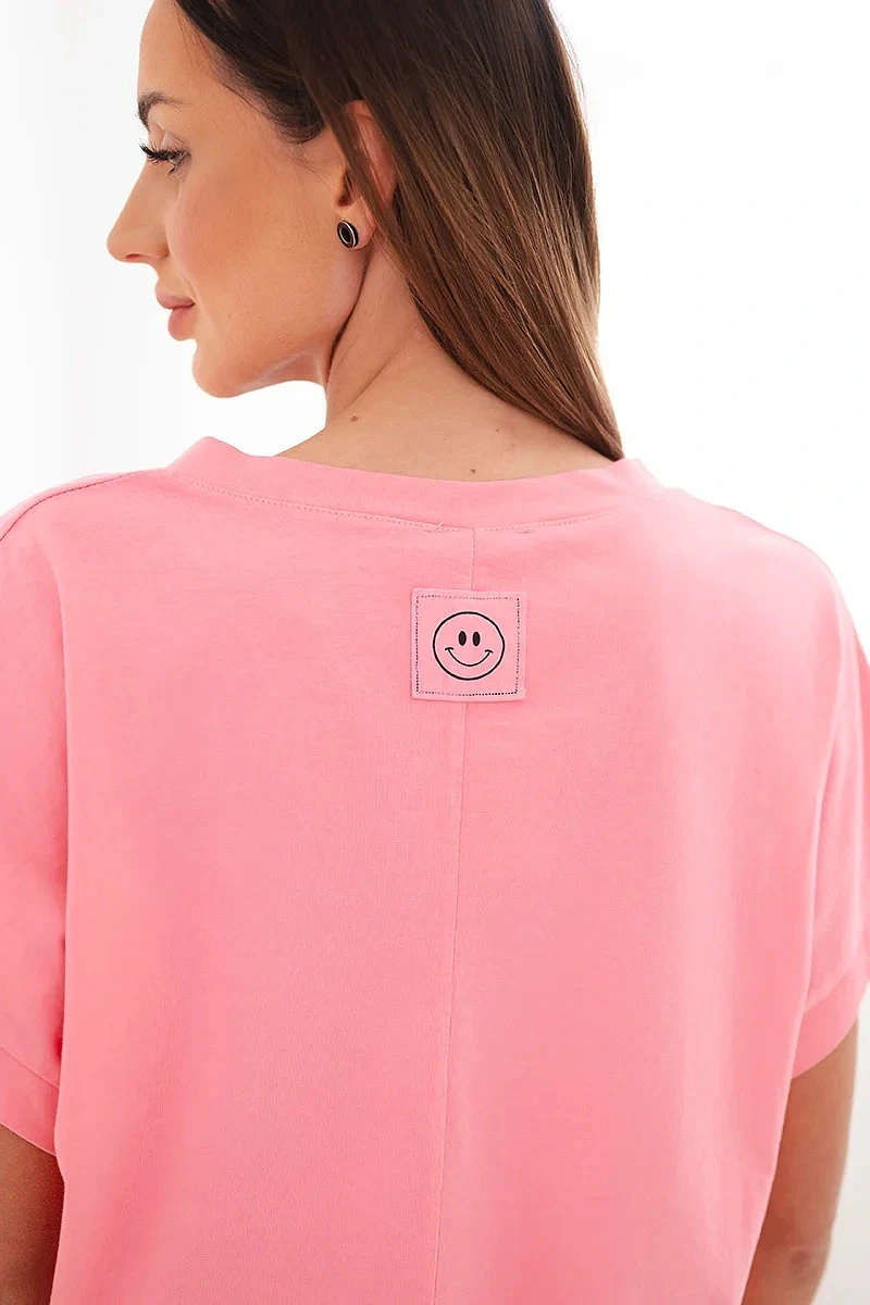 Dámská bavlněná halenka s výstřihem do V a s krátkým rukávem světle růžová
