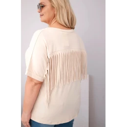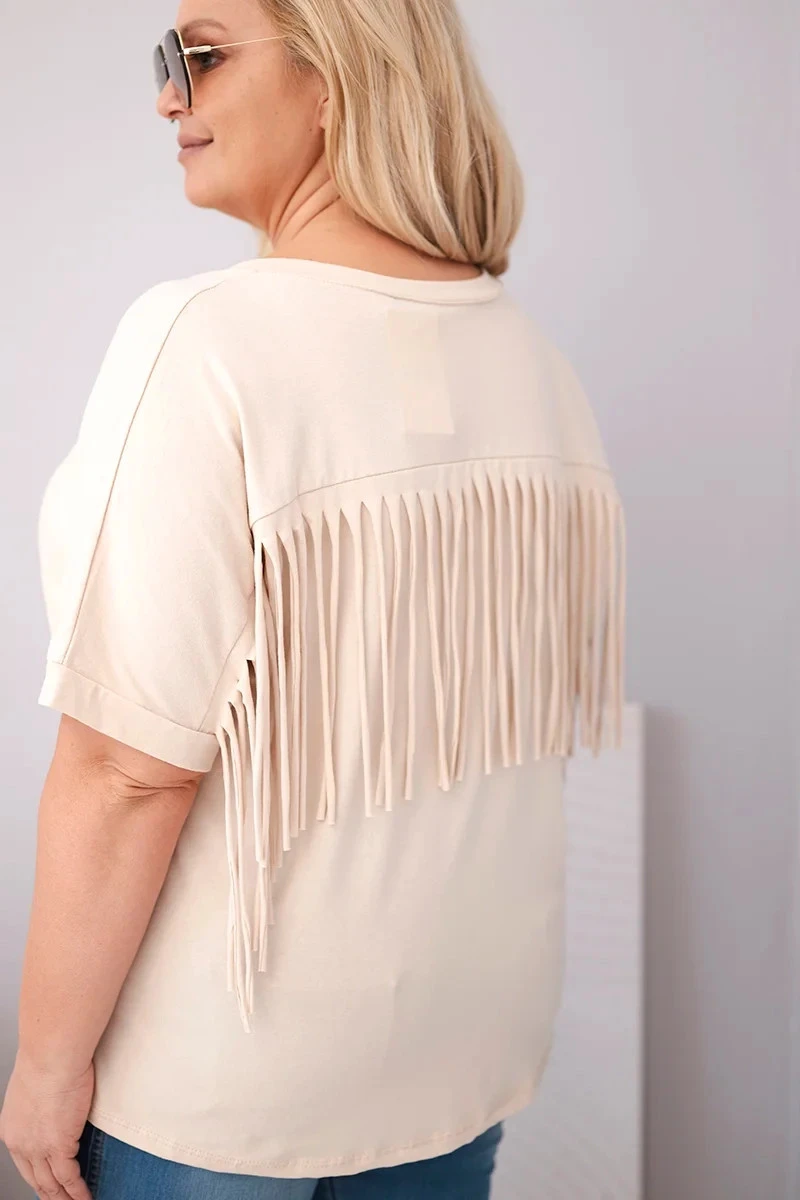 Dámská bavlněná halenka Plus size s výstřihem do V a třásněmi na zádech béžová