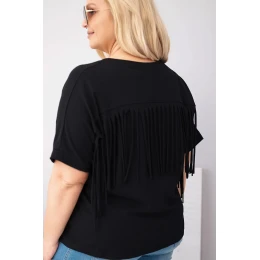 Dámská bavlněná halenka Plus Size s výstřihem do V a třásněmi na zádech černá