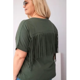 Dámská bavlněná halenka Plus Size s výstřihem do V a třásněmi na zádech khaki
