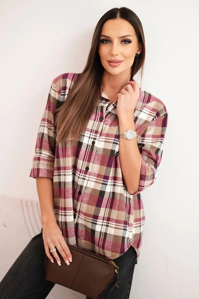 Dámská košile v klasickém károvaném vzoru je nadčasovým kouskem garderoby, který se skvěle hodí do každodenních stylizací. Model s prodlouženým zadním dílem a ohrnutými rukávy je kombinací pohodlí a stylu, které si zamilujete hned při prvním nošení. Košile vypadá skvěle jak k džínům, tak k legínám – ideální do práce, na nákupy nebo na setkání s přáteli.