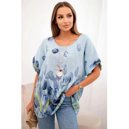Dámská bavlněná košile s květinovým vzorem modrý