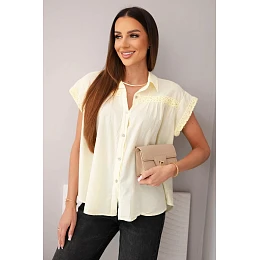 Dámská bavlněná košilová halenka s krajkou a krátkým rukávem žlutá