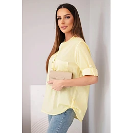 Dámská bavlněná košilová halenka s krátkým rukávem a kapsou žlutá