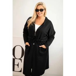 Dámská bavlněná mikina Plus Size s kapucí a kapsami černá