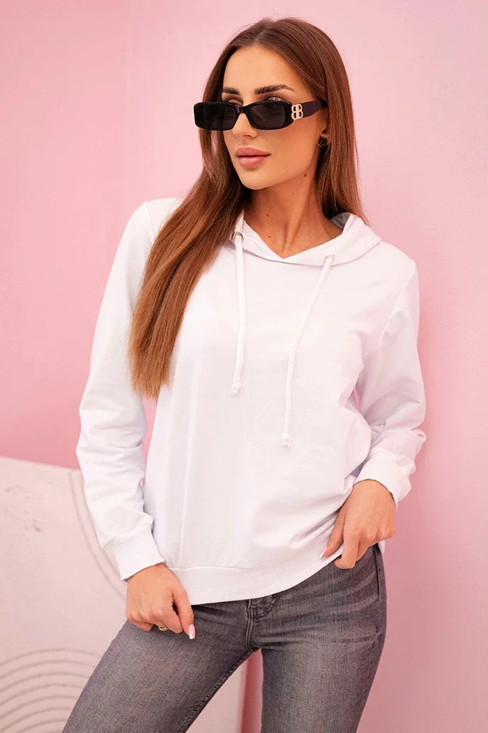 Dámská bavlněná mikina s kapucí a kapsami bílá