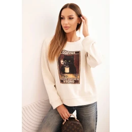 Dámská bavlněná mikina s potiskem kočky a nápisem světlá béžová
