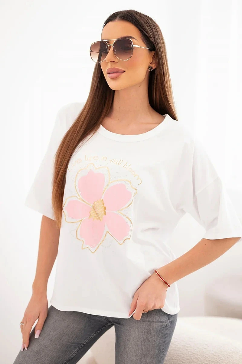 Dámská bavlněná oversize halenka s květinovým potiskem bílá