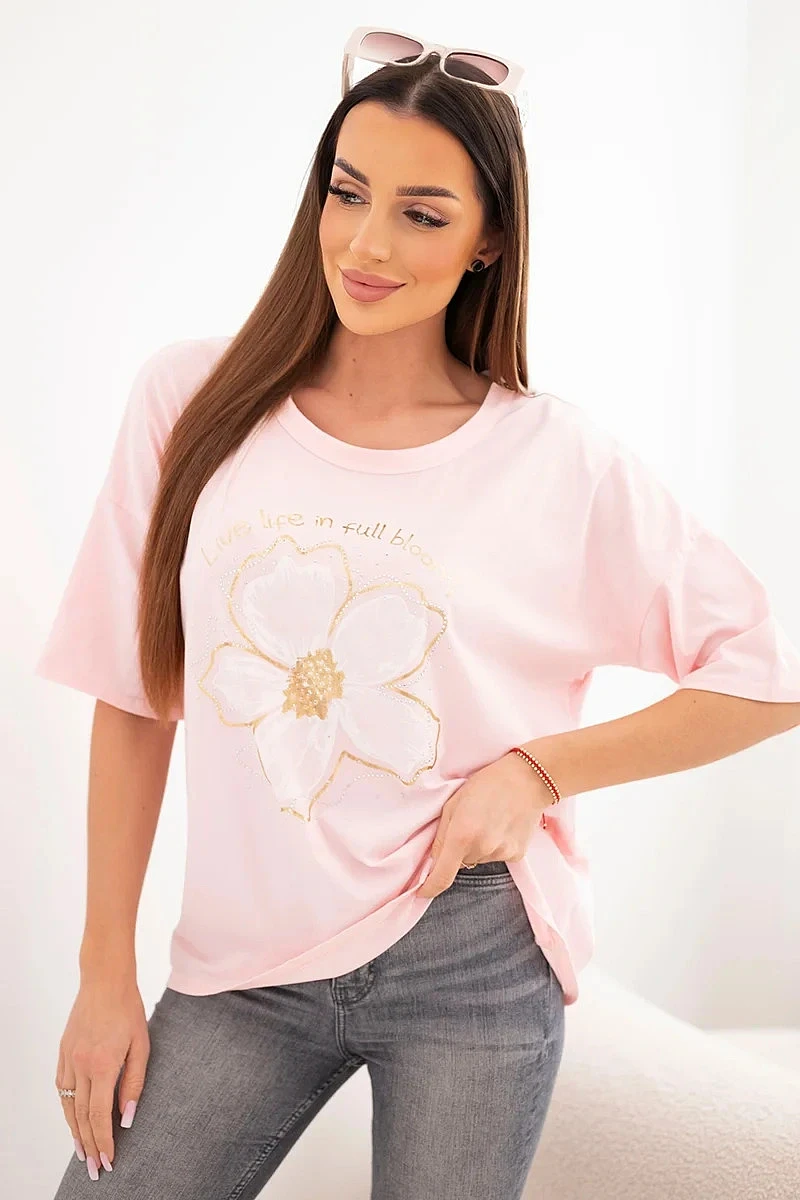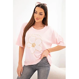 Dámská bavlněná oversize halenka s květinovým potiskem bonbónově růžová