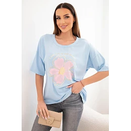 Dámská bavlněná oversize halenka s květinovým potiskem modrá