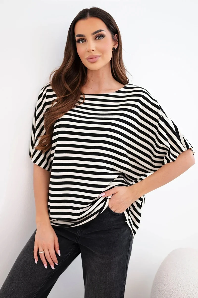 Dámská bavlněná halenka v pruhy je pohodlná a stylová volba ideální pro každodenní outfity. Volný střih zajišťuje volnost pohybu a pohodlí po celý den. Klasický pruhovaný vzor dává halence módní a nadčasový charakter, díky čemuž se skvěle hodí k mnoha outfitům.
