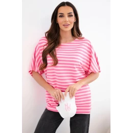 Dámská bavlněná pruhovaná halenka s krátkým rukávem růžová