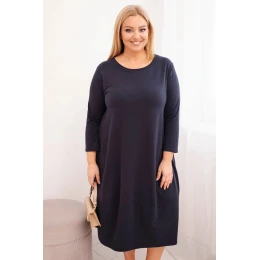 Dámská bavlněná šatová Plus Size s ohrnovacími rukávy a kapsami granátová