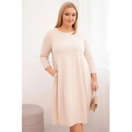 Dámská bavlněná šaty Plus Size s ohrnovacími rukávy a kapsami béžová