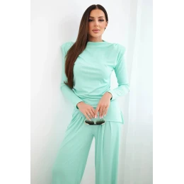 Dámská bavlněná souprava s halenkou a kalhotami s širokými nohavicemi mátová