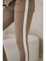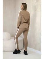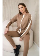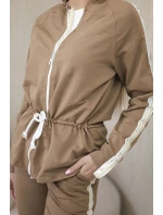 Dámská bavlněná souprava s proužky a stahovacími lemy velbloud
