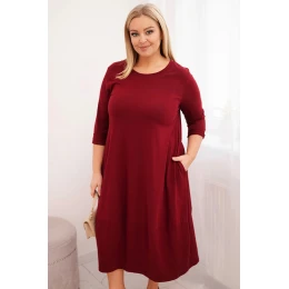Dámská bavlněná sukně Plus Size s ohrnovacími rukávy a kapsami bordová