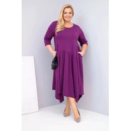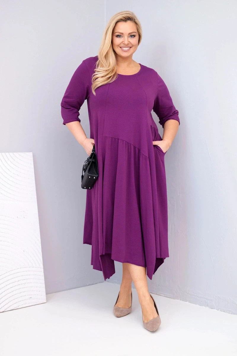 Dámská bavlněná sukni Plus Size s asymetrickým lemem tmavě fialová